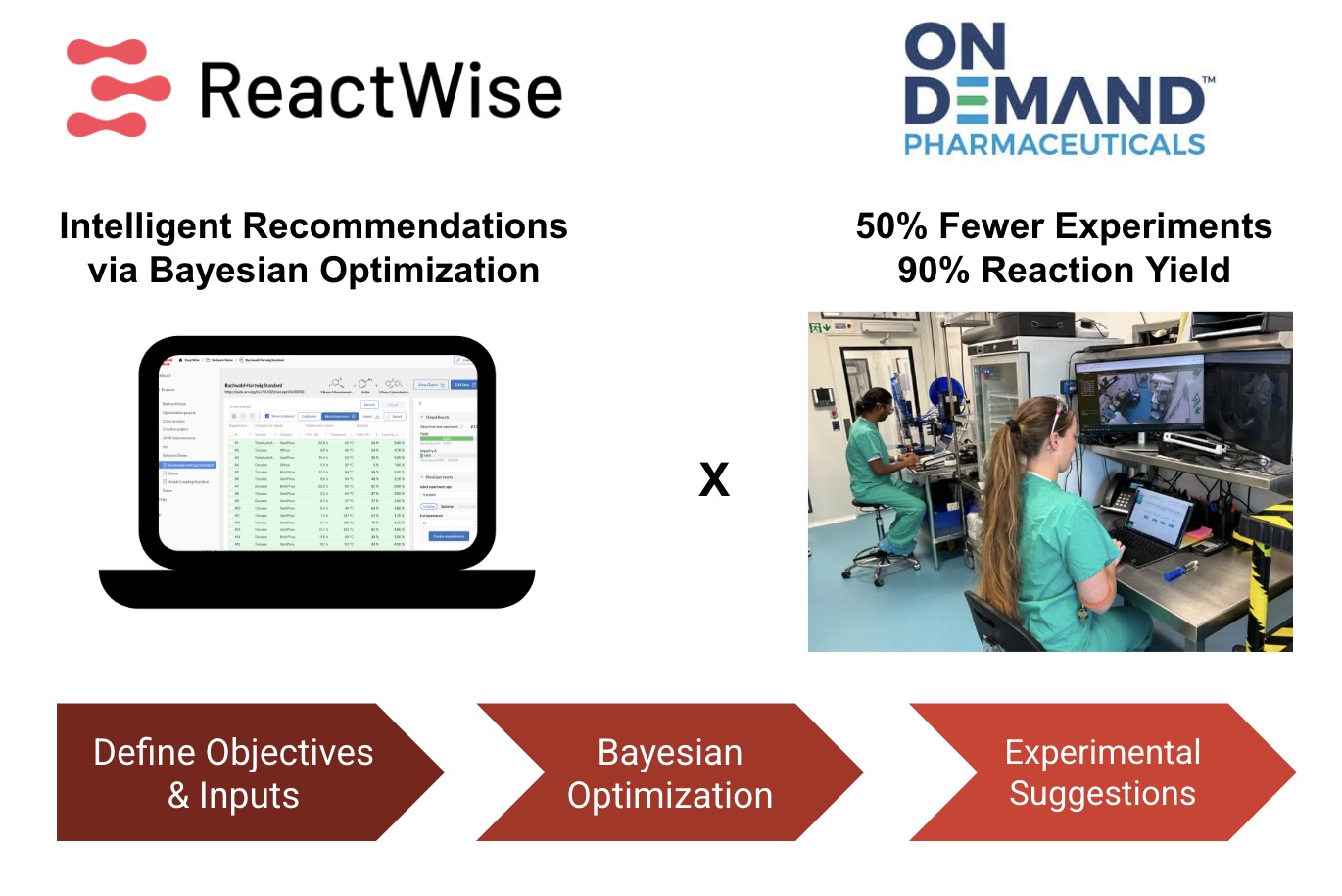 Over 50% reduction in experimental workload while achieving 90% reaction yield - without compromising on insight or confidence.