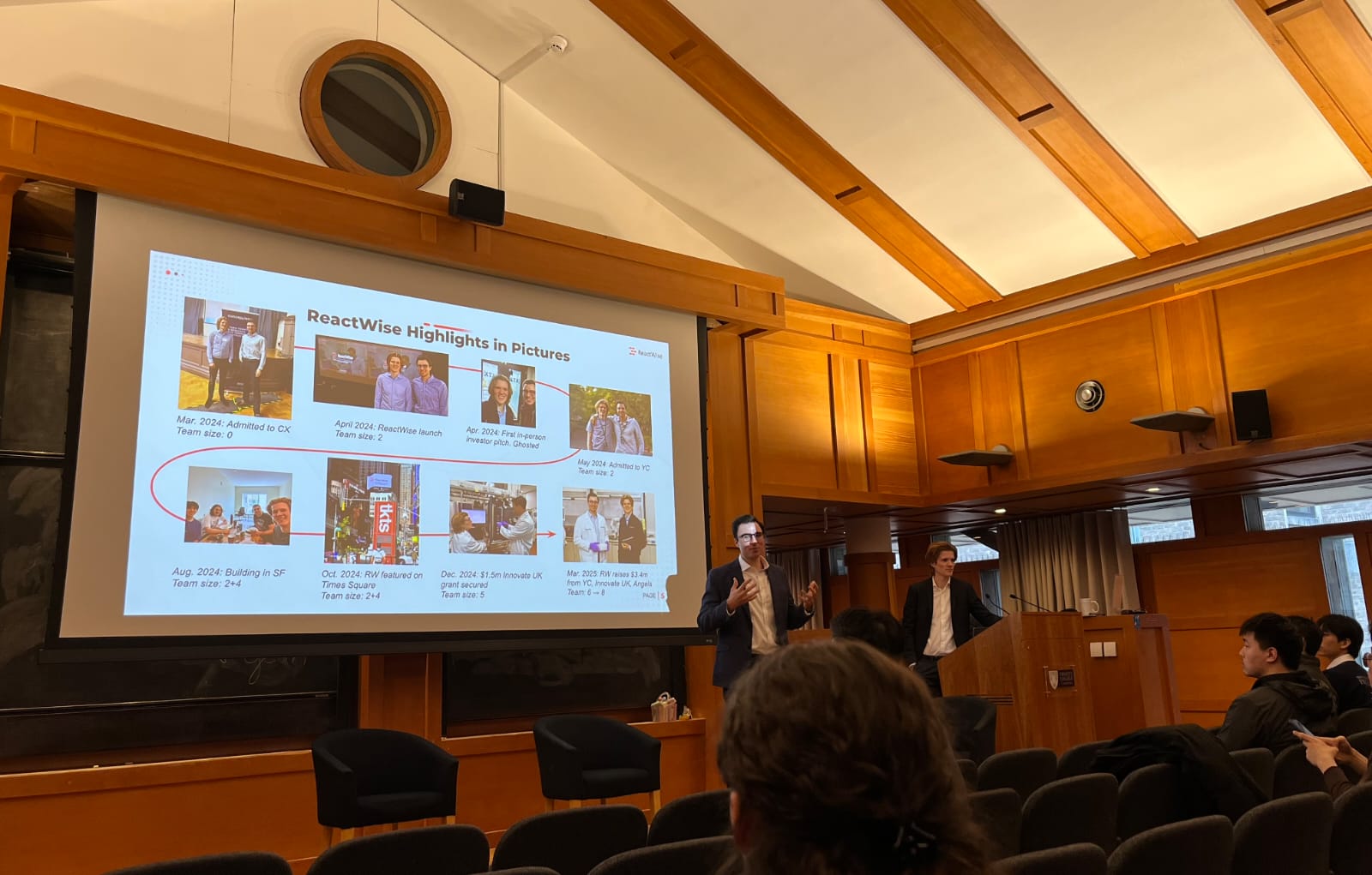 Last week, the co-founders of ReactWise Alexander Pomberger and Daniel Wigh had the privilege of presenting ReactWise’s journey at the Trinity College Cambridge Engineering Society.