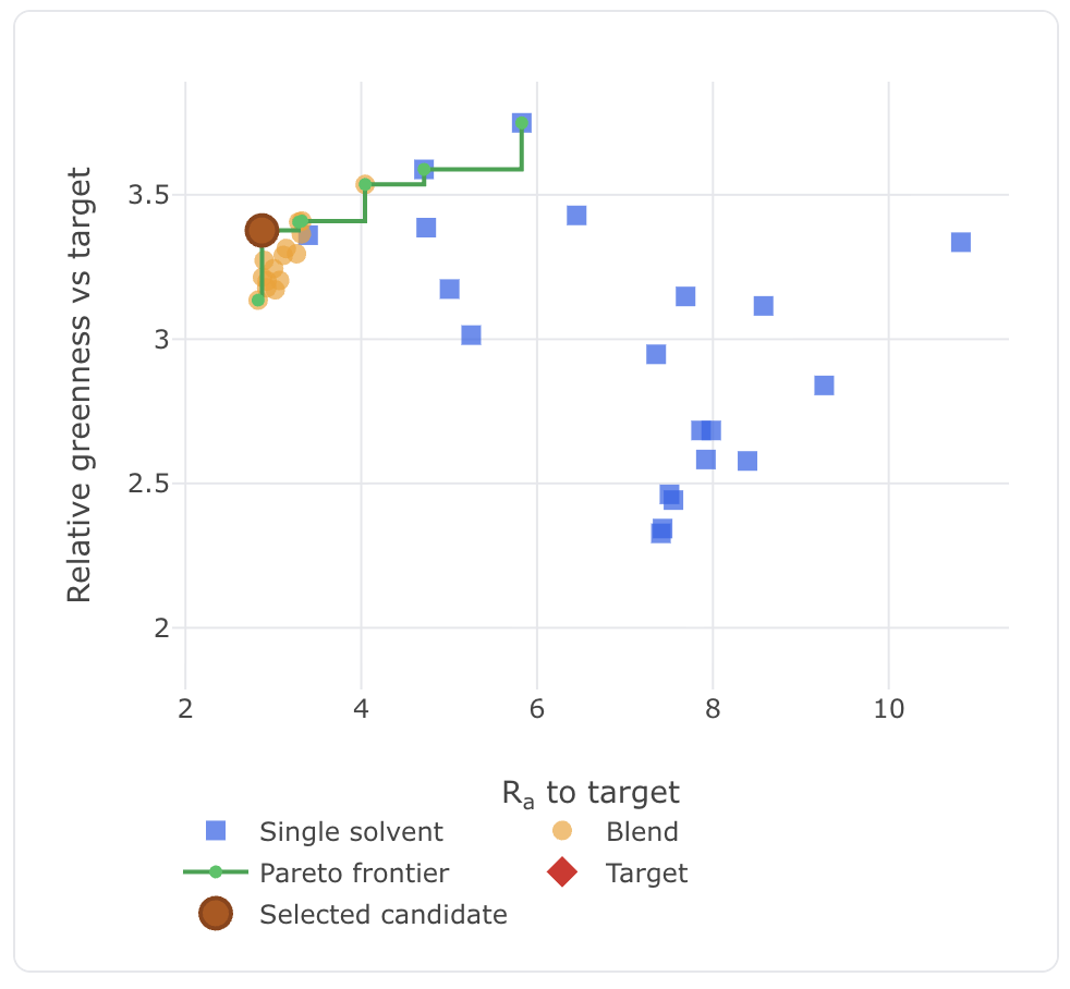 Our new Solvent Selection Tool lets you define your origin solvent and proposes single solvent replacements or binary mixtures that match your target physicochemical properties, ranked alongside a greenness score.