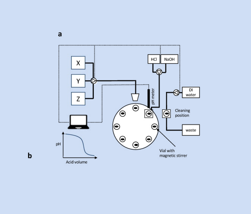Automated ph adjustment driven by robotic workflows and active machine learning.